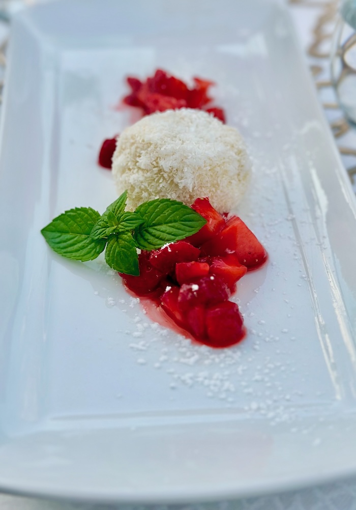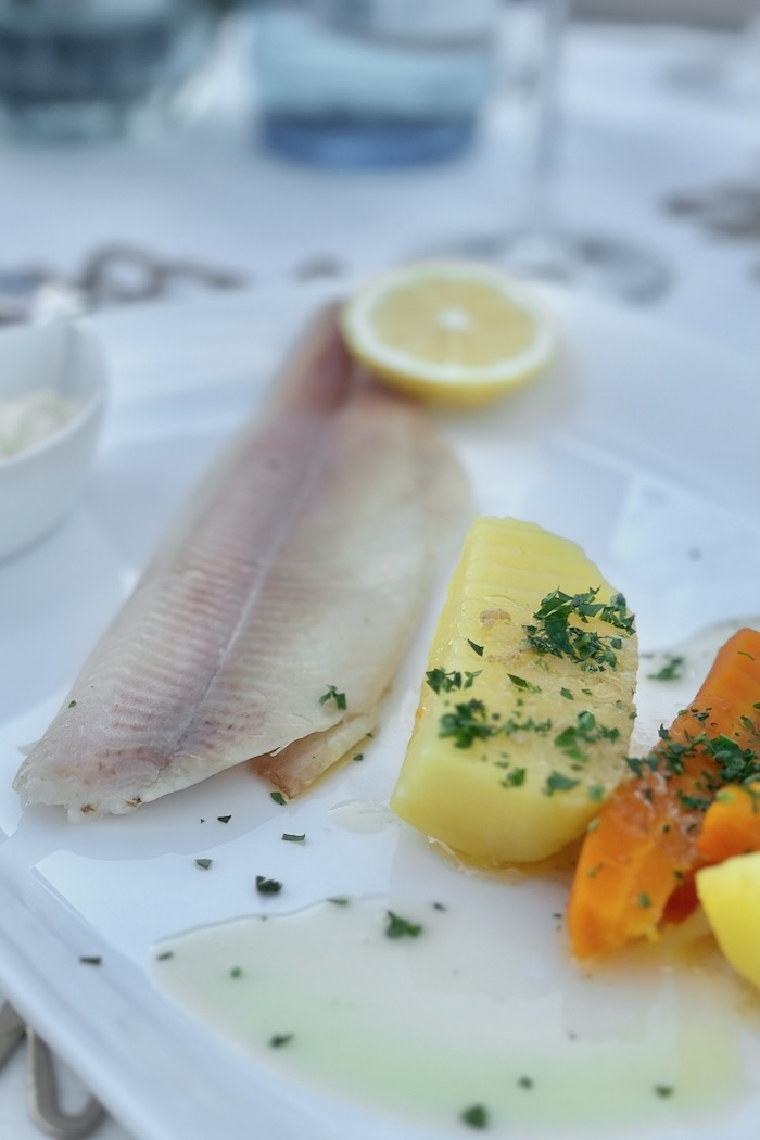 Die geräucherte Gebirgsforelle kommt vom Blaas (der uns zahlreich in der Vinschger Top-Gastronomie begegnet), doch eben von ihm und keinem anderen. Dazu ein hausgemachter Meerrettich-Dip. Auch das samtige Zitronensorbet mit seiner herben Süße ist eine genussvolle Überraschung