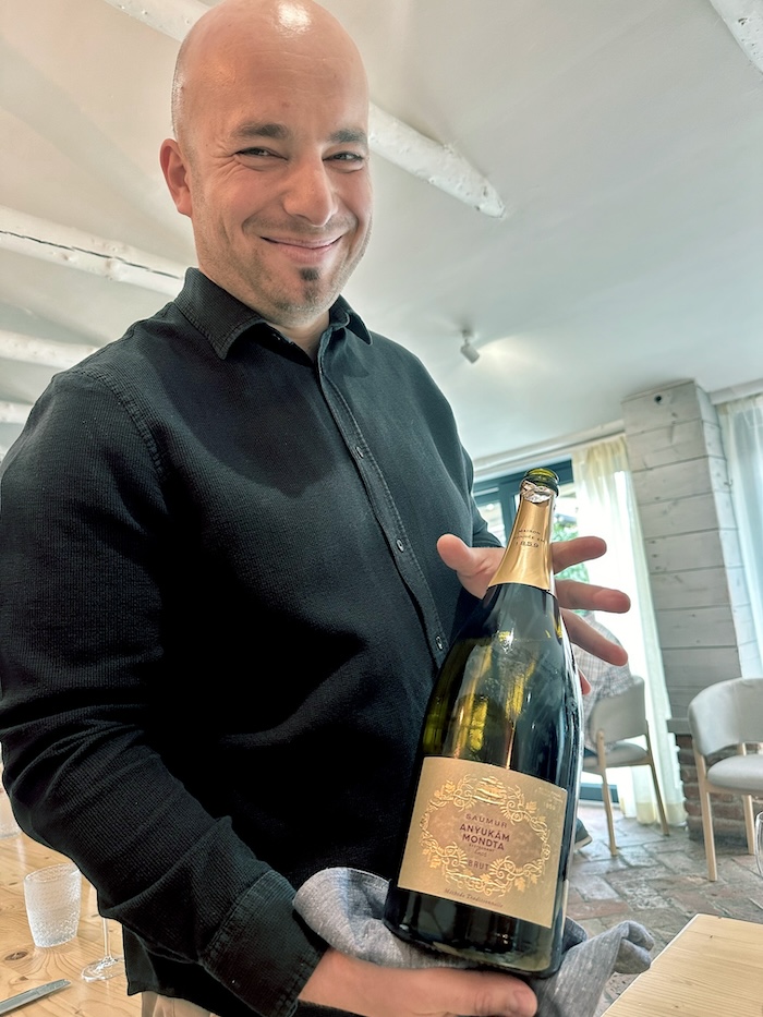 Service mit Kompetenz und Charme – Ákos offeriert eine hauseigene Cuvee von der Loire.