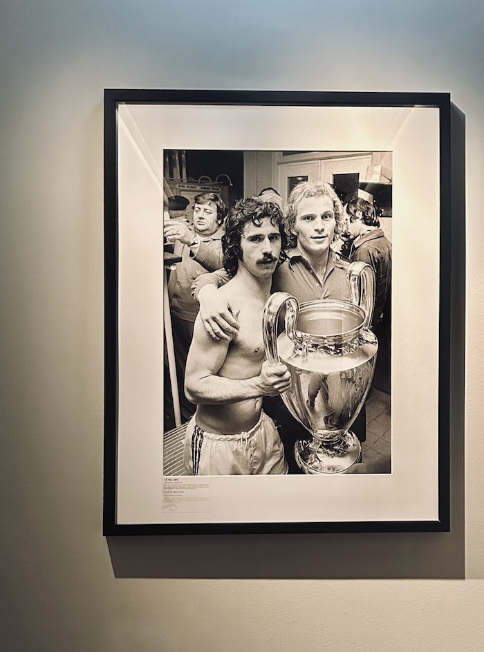 Wer mit dem Lift die Hotelebenen erreicht und durch die Flure wandelt, fühlt sich wohl behütet. Ein angenehmer Duft, dazu die schweren roten Türen – Originalfarbe des FC Bayern – Fotos der größten FC Bayern-Spieler und Siege.