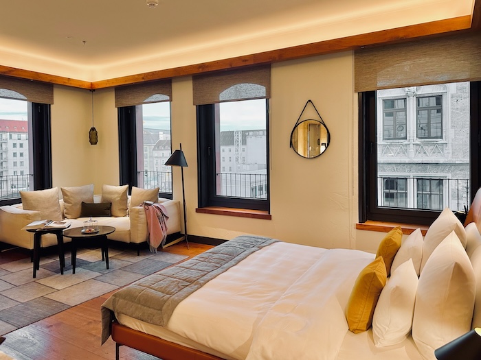 Unser Hotel ist in Kooperation mit dem FC Bayern entstanden – im vorderen Teil des Hauses befindet sich ja der FC Bayern Store – von dem aus Sie übrigens direkt in unser Hotel kommen. Unsere 31 Zimmer und zwei Suiten entsprechen der Zahl der errungenen Meistertitel des FC Bayern. So zumindest der Plan. Nur holen die einen Titel nach dem anderen. Wir werden wohl anbauen müssen”, lächelt Thomas Igl