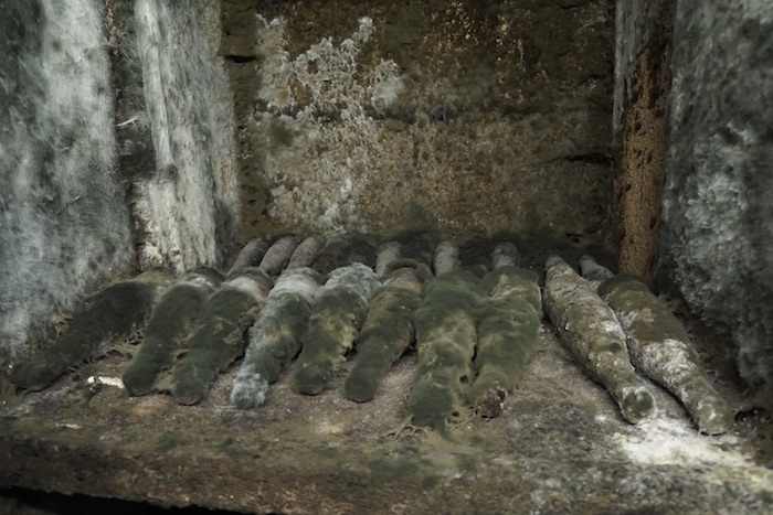 Im Keller bekommt jeder Wein sein eigenes Holzfass, mache der Fässer haben einige Jahrzehnte auf dem Buckel. Die Bedingungen sind ideal, das Mikroklima perfekt, der Schimmel schließt den Wein ein wie ein Kokon.