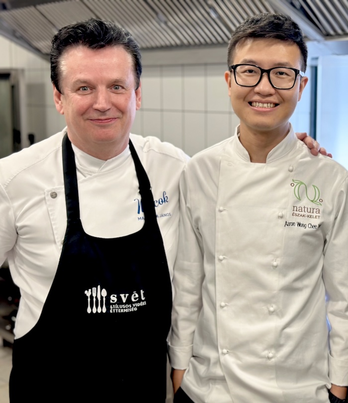 Zwei Tage lang waren sie in verschiedenen Küchen zugange: Köche aus Indien, Singapur, Finnland, Spanien, die gemeinsam mit Chefs ungarischer Restaurants ein 7-Gänge Gala-Menü auf die Beine stellten und dabei die ungarischen Produkte in den Vordergrund stellten. Initiiert wurde dieses Event von László Ruprecht und Svét.