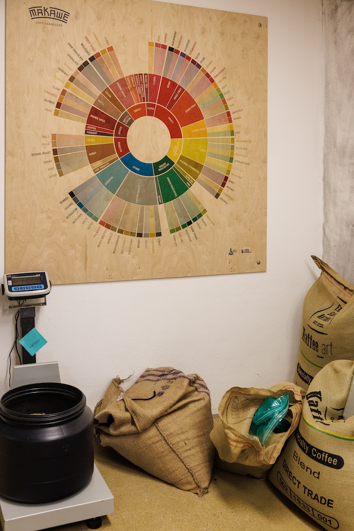 Inzwischen ist die Craft-Rösterei MaKaWe technisch auf dem neuesten Stand. Doch darauf alleine verlassen sich die Jungs nicht, sie vertrauen ihren Sinnen. Was tun beim hörbaren Knacken, wenn der Druck von Wasserdampf und Gasen in der Kaffeebohne die Zellwände zum Aufplatzen bringt? Wann passt die Farbe der Bohnen? Stimmt der Geruch? Sie haben ein Gespür entwickelt – auch für die Kaffeesorten und deren Mischungsverhältnis, ob Arabica oder Robusta, Blend oder Single Origin.