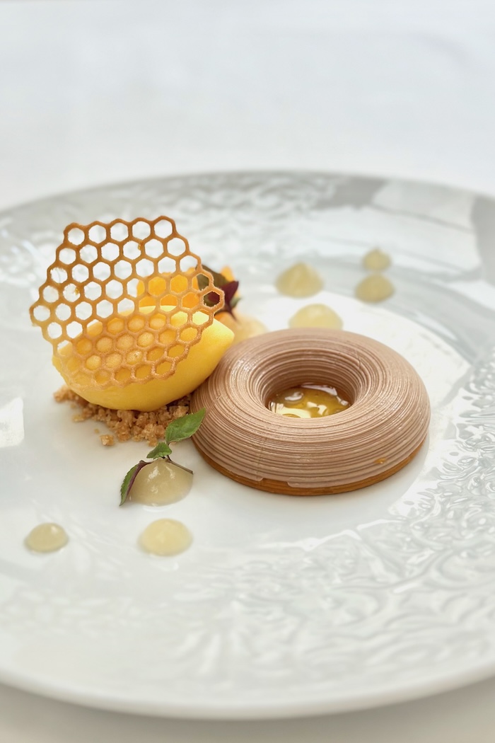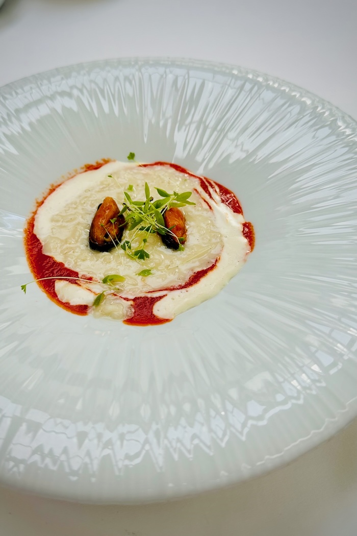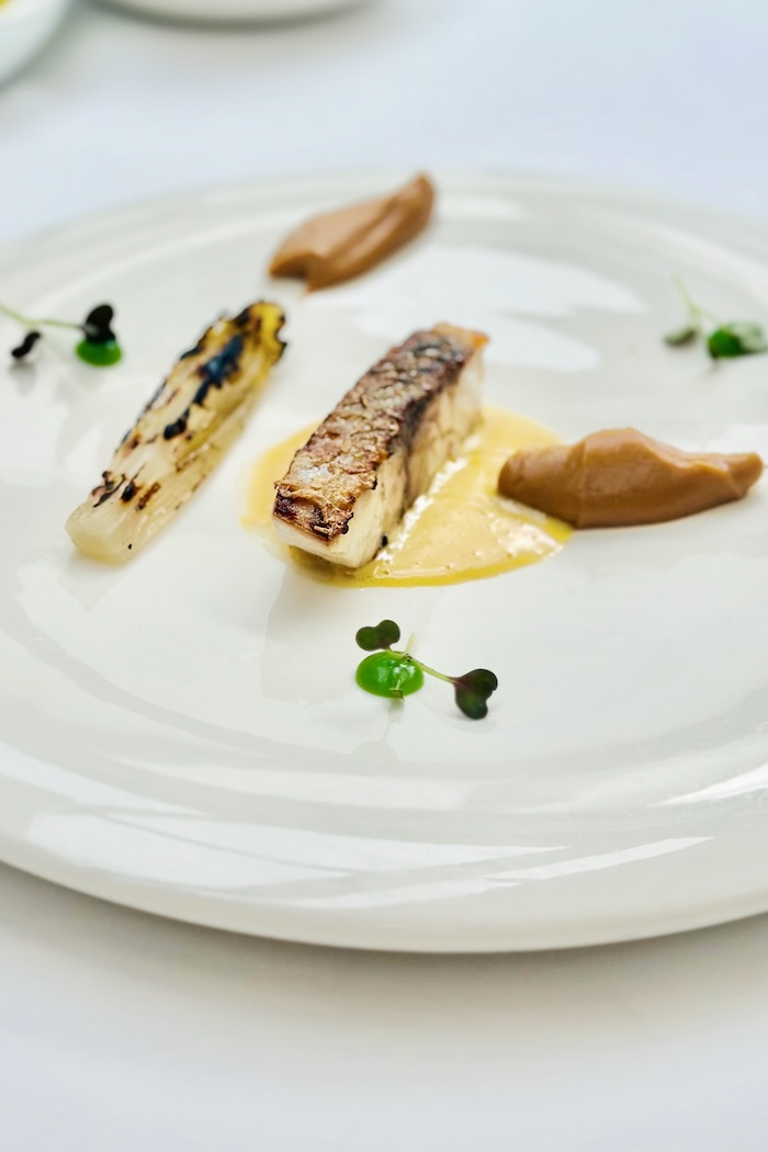 Es folgt ein cremiger Bombeta-Reis von der Insel, herrlich gebettet in Piquillo-Paprika-Püree, affiiniert mit Ziegenkäse. Kaum zu toppen, denken wir, doch dann wird Corvina Fisch in einer sensationellen Ras-el-Hanout-Beurre-blanc serviert. Magie für unseren Gaumen.