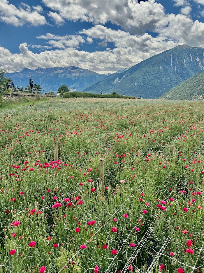 Weiß, Blau, Rosa, Rot, Lila, Gelb, Schwarz – die Pracht von Kornblume, Melisse, Malve, Schafgarbe, Salbei, Ringelblume und Blüh-Kräutern raubt dem Auge den Atem. Die Fasui Felder unterhalb von Kloster Marienberg sind wahre „Kraftfelder“. Die Tees wahre Aromawolken.