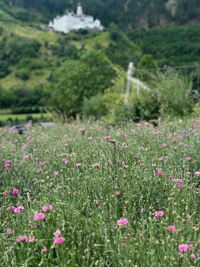 Weiß, Blau, Rosa, Rot, Lila, Gelb, Schwarz – die Pracht von Kornblume, Melisse, Malve, Schafgarbe, Salbei, Ringelblume und Blüh-Kräutern raubt dem Auge den Atem. Die Fasui Felder unterhalb von Kloster Marienberg sind wahre „Kraftfelder“. Die Tees wahre Aromawolken.